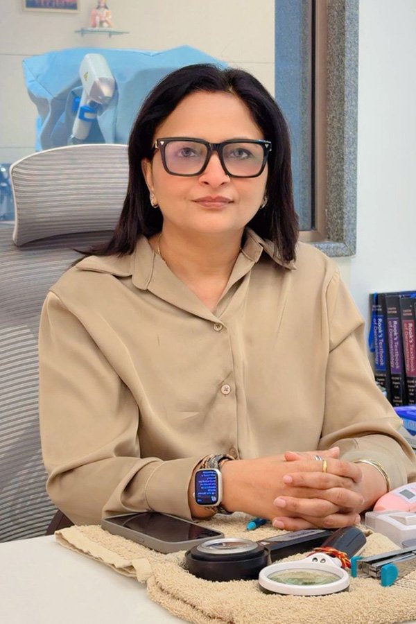 Dr. Parul Goyal is a distinguished dermatologist with a passion for advancing the field of dermatology and cosmetology. With a Master’s degree in Dermatology, Venereology & Leprology, she is also certified in advanced Allergy and Immunology from the esteemed Ancient School of Wisdom in Bangalore. Dr. Goyal’s passion lies in delivering outstanding skincare, nail care, and haircare treatments, honing her expertise to bring exceptional results to her patients.